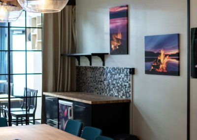The downstairs lounge is available upon reservation. Access to the breakfast room and conference room is via a comfortable lounge area.