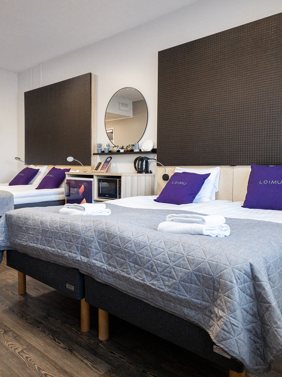 Hotelli Loimu tarjoaa majoitusta yhden-, kahden-, kolmen- ja neljänhengen huoneissa. Huoneet on sisustettu maanläheisillä väreillä ja tarjoavat viihtyisän sekä tasokkaan majoituskokemuksen.