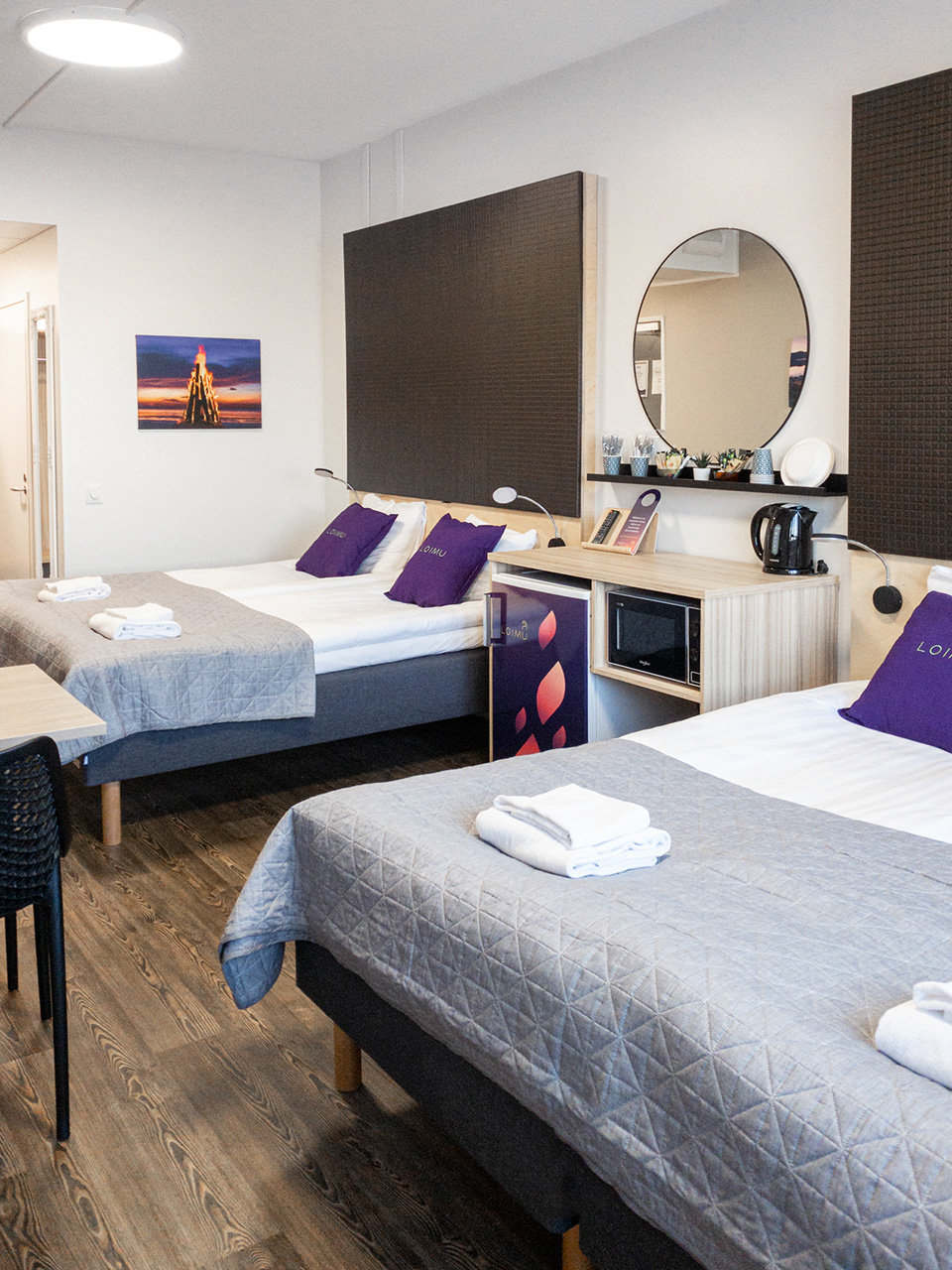 Hotelli Loimu yhdistää laadukkaan majoituksen sekä kilpailukykyisen hinnoittelun ja tarjoaa asiakkailleen aamiaisen lisäksi ilmaisen pysäköinnin. Työmatkailijat ja opiskelijatkaan eivät ole tuntematon näky hotellissamme – Me tarjoamme sinulle makoisat yöunet, työskentelyrauhan tai lepohetken arjen keskellä, olipa syy vierailuusi mikä tahansa.
